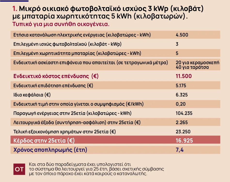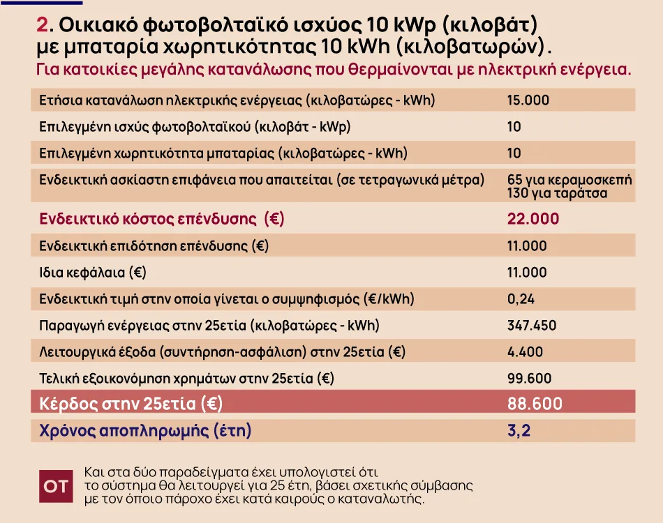 με ατομικό εισόδημα άνω των 20.000 ευρώ ή οικογενειακό άνω των 40.000 ευρώ θα επιδοτούνται στο 90% για τη μπαταρία και στο 25% για το φωτοβολταϊκό.