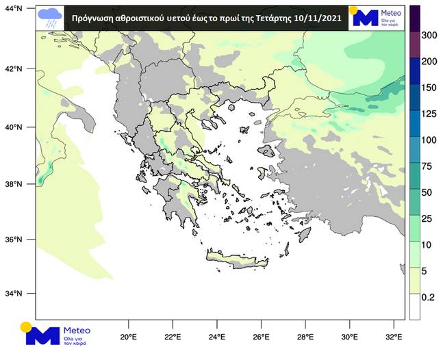Τοπικές βροχές θα σημειωθούν από τις βραδινές ώρες της Τρίτης 09/11 έως το πρωί της Τετάρτης 10/11 κατά κύριο λόγο στα βόρεια, ανατολικά και νοτιοανατολικά ηπειρωτικά και στα βόρεια της Κρήτης. Στην Εικόνα 1 παρουσιάζεται ο αθροιστικός υετός που αναμένεται έως το πρωί της Τετάρτης 10/11.