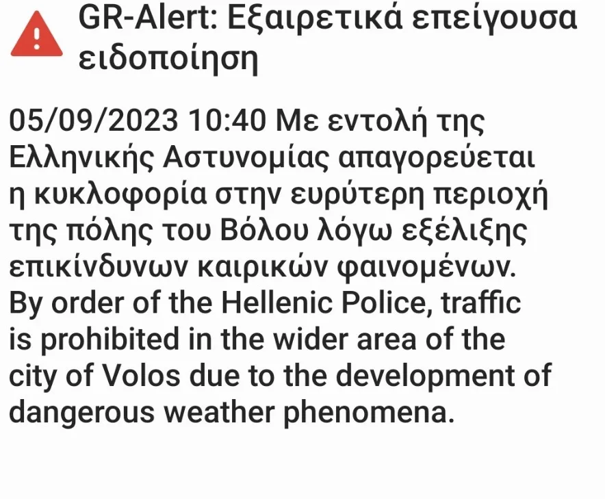 Στην απαγόρευση της κυκλοφορίας στην ευρύτερη περιοχή του Βόλου λόγω της κακοκαιρίας Daniel που πλήττει την περιοχή, προχώρησε η Αστυνομία με μήνυμα του 112.