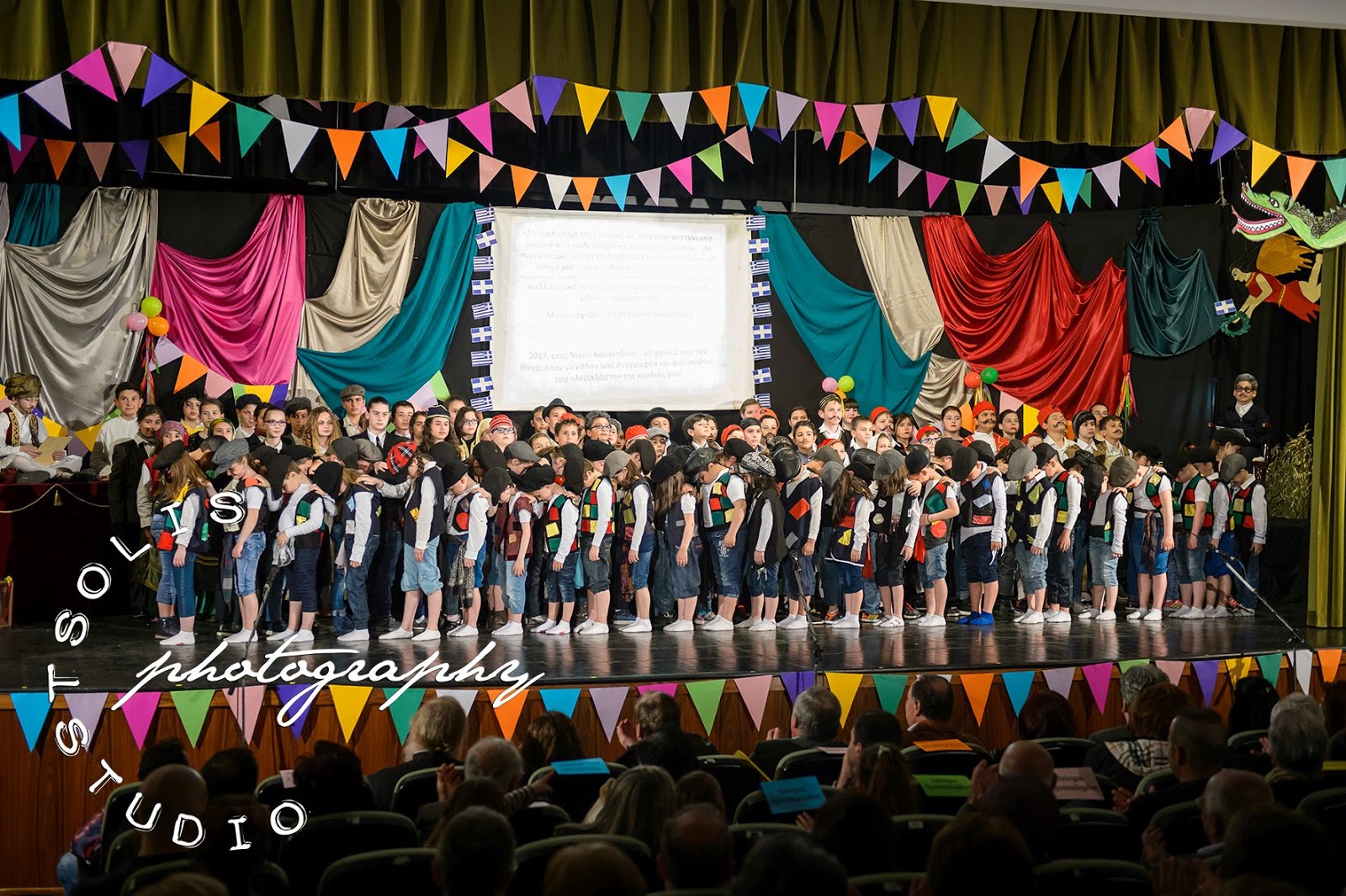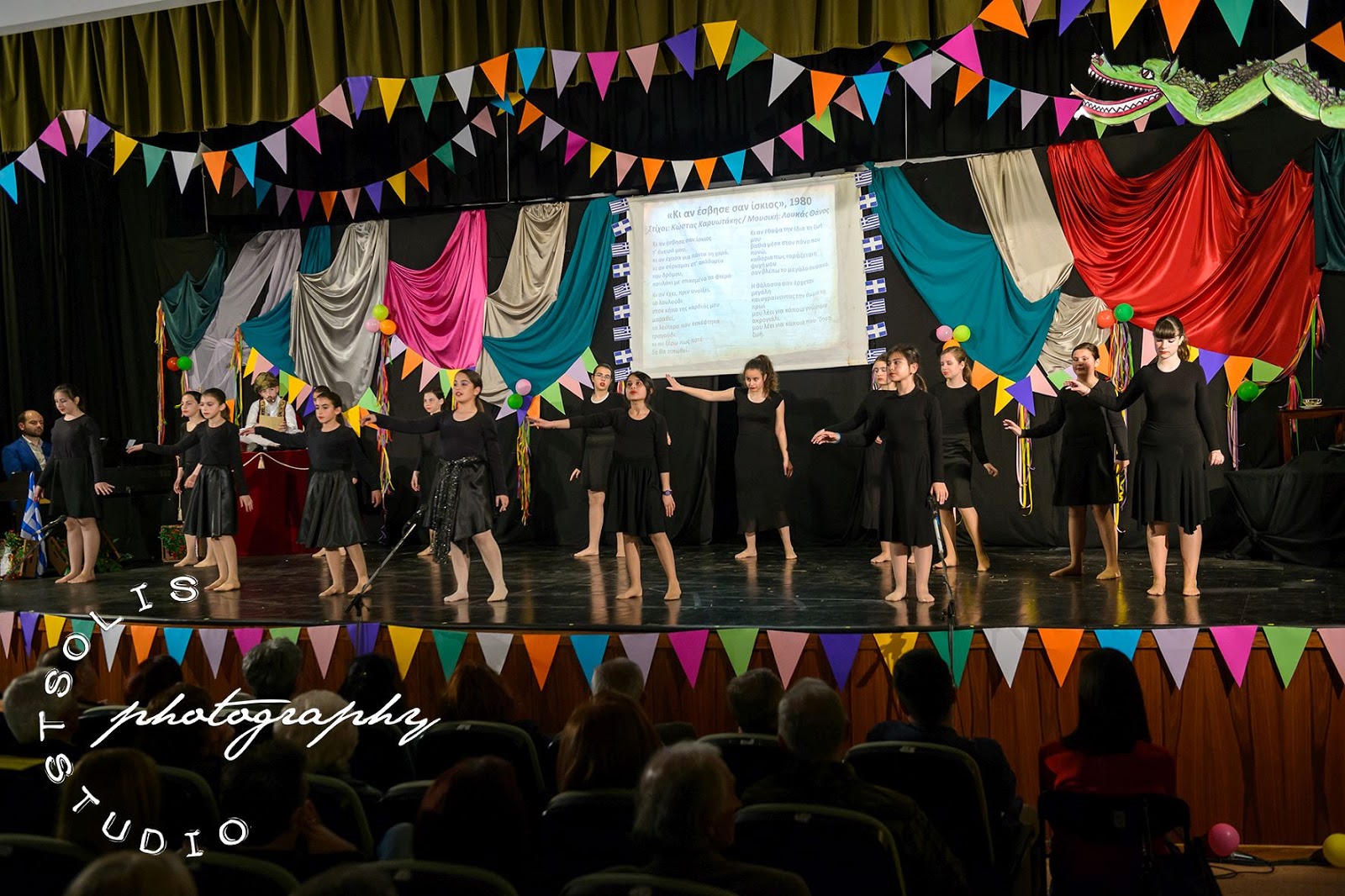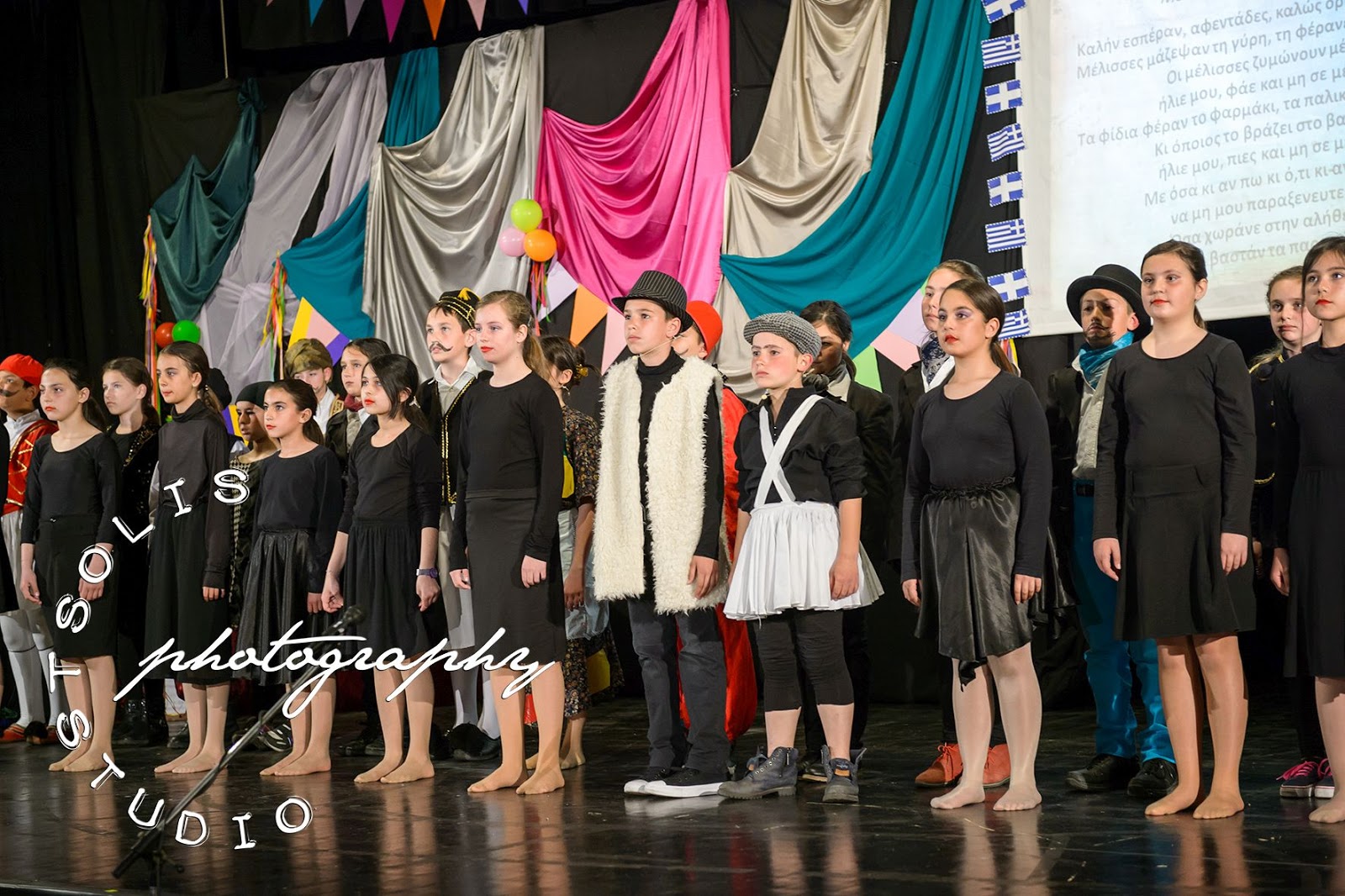 | Η παράσταση άρχισε με το διαχρονικό τραγούδι "Λένγκω-Λένγκω" του Γιάννη Μαρκόπουλου και τους 130 μαθητές/μαθήτριες επί σκηνής! |