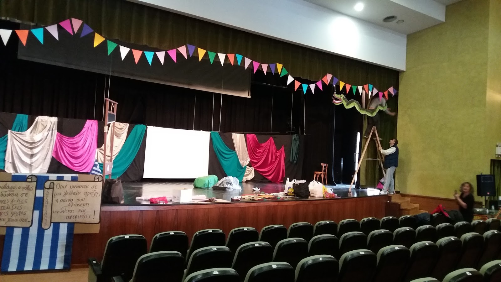 | Ο συνάδελφος Ιωάννης, όπως πέρυσι έτσι και φέτος, μας βοήθησε στις κατασκευές των σκηνικών και στην επεξεργασία του video. |
