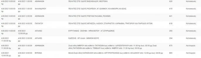 Αναλυτικά οι πίνακες με τις περιοχές της Αττικής και τις ώρες που θα σημειωθεί διακοπή ρεύματος: