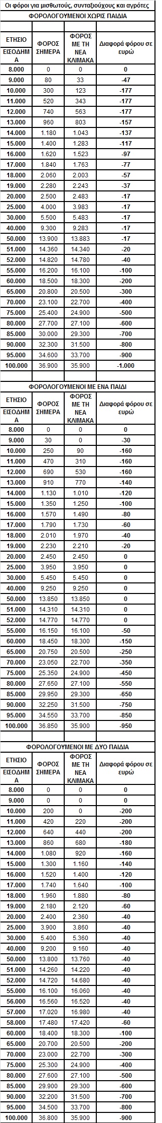 Αν δε ο μισθωτός με εισοδήματα στη ζώνη των 20.000 έως 52.000 ευρώ έχει και ένα παιδί, τότε οι ελαφρύνσεις από τις αλλαγές στην κλίμακα και το αφορολόγητο είναι ένα ολοστρόγγυλο μηδενικό.