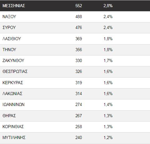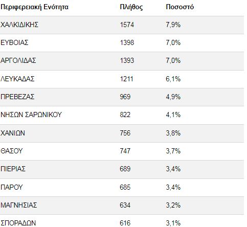 Ο πίνακας με τις 25 περιφερειακές ενότητες με το μεγαλύτερο αριθμό ενεργοποιημένων επιταγών σε τουριστικά καταλύματα τον Ιούνιο.