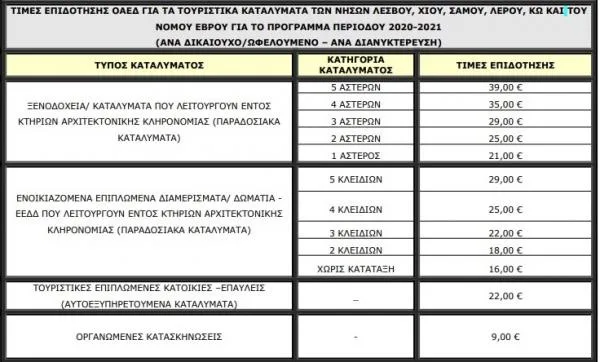 Επίσης μέχρι πέρσι, οι τιμές επιδότησης ισχύουν για όλη τη διάρκεια του προγράμματος περιόδου 2020-2021, χωρίς να επηρεάζονται από τυχόν μεταβολές των οικονομικών και λοιπών συνθηκών. Φέτος εξετάζεται να ισχύσουν ειδικές τιμές επιδότησης για την λεγόμενη high season του Αυγούστου.
