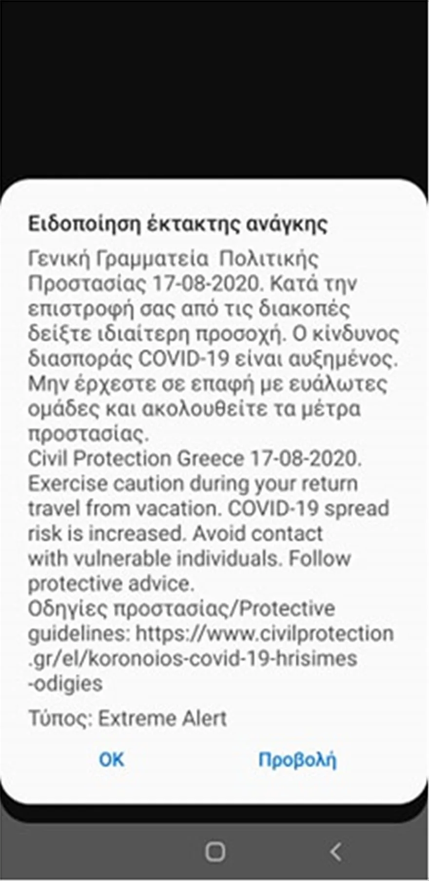 «Κατά την επιστροφή σας από τις διακοπές δείξτε ιδιαίτερη προσοχή. Ο κίνδυνος διασποράς COVID-19 είναι αυξημένος. Μην έρχεστε σε επαφή με ευάλωτες ομάδες και ακολουθείτε τα μέτρα προστασίας», έγραφε το μήνυμα.