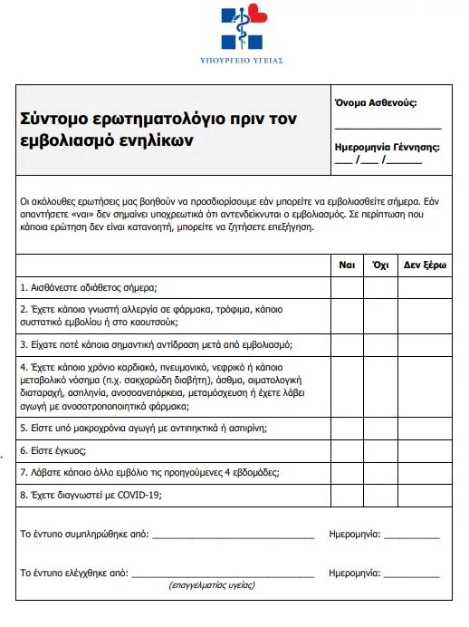 Το ερωτηματολόγιο πριν τον εμβολιασμό