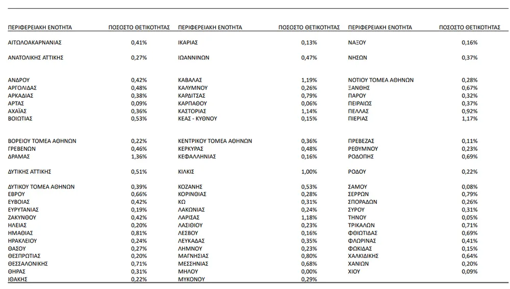 Οι περιοχές με την υψηλότερη θετικότητα