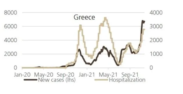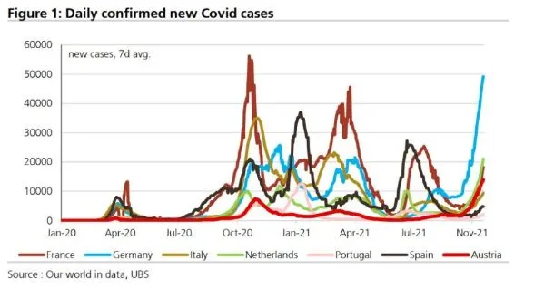 Ωστόσο, κρατίδια έχουν αυστηροποιήσει τα μέτρα, με την πρόσβαση στους χώρους εργασίας και τις συγκοινωνίες να γίνεται με πιστοποιητικό εμβολιασμού, νόσησης ή αρνητικό τεστ. Σε κάποιες περιοχές, οι ανεμβολίαστοι αποκλείονται από τους εσωτερικούς χώρους και την εστίαση. Καθώς τα κρούσματα αυξάνονται, ακόμα πιο αυστηρά μέτρα είναι πιο πιθανά στη Γερμανία, τονίζει η UBS, που ωστόσο δεν βλέπει πιθανό ένα καθολικό lockdown