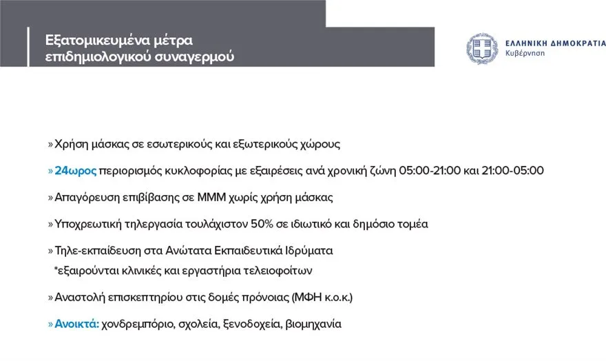 o Για το διάστημα 05.00-21.00 επιτρέπονται οι μετακινήσεις ΜΟΝΟ για τους παρακάτω λόγους: