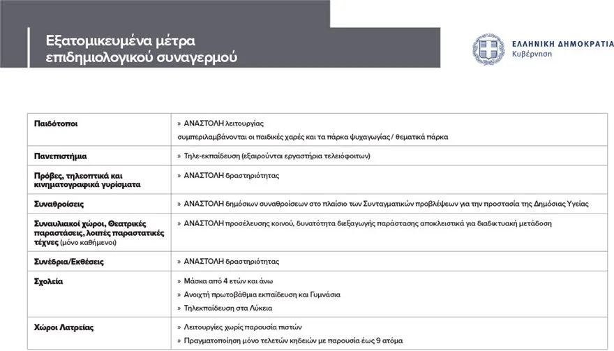 § Στην αναστολή λειτουργίας των παιδότοπων, συμπεριλαμβάνονται οι παιδικές χαρές και τα πάρκα ψυχαγωγίας / θεματικά πάρκα.