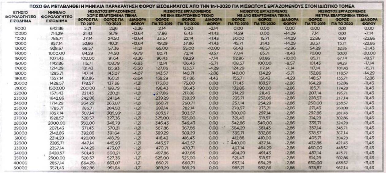 • από 2.000 σε 1.120 ευρώ για κάθε μισθωτό και συνταξιούχο με τρία εξαρτώμενα τέκνα,