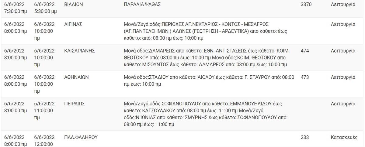 Προκειμένου να προγραμματίσετε τις εργασίες σας και να ελαχιστοποιηθεί η όχλησή σας, στον ακόλουθο πίνακα, μπορείτε να ενημερωθείτε για τις περιοχές και τις ώρες προγραμματισμένων διακοπών ηλεκτροδότησης» αναφέρει η ΔΕΔΔΗΕ.