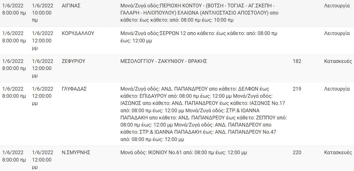 Προκειμένου να προγραμματίσετε τις εργασίες σας και να ελαχιστοποιηθεί η όχλησή σας, στον ακόλουθο πίνακα, μπορείτε να ενημερωθείτε για τις περιοχές και τις ώρες προγραμματισμένων διακοπών ηλεκτροδότησης» αναφέρει η ΔΕΔΔΗΕ.