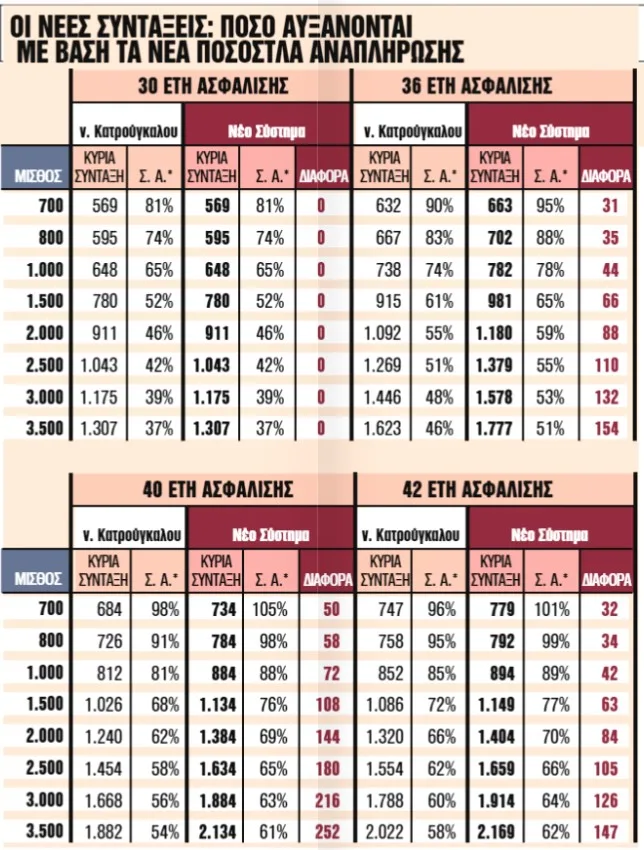 Από τα 36 έτη και 1 μήνα ως τα 39 έτη οι κύριες ανταποδοτικές συντάξεις έχουν αύξηση από 12,6% ως 16,3%.