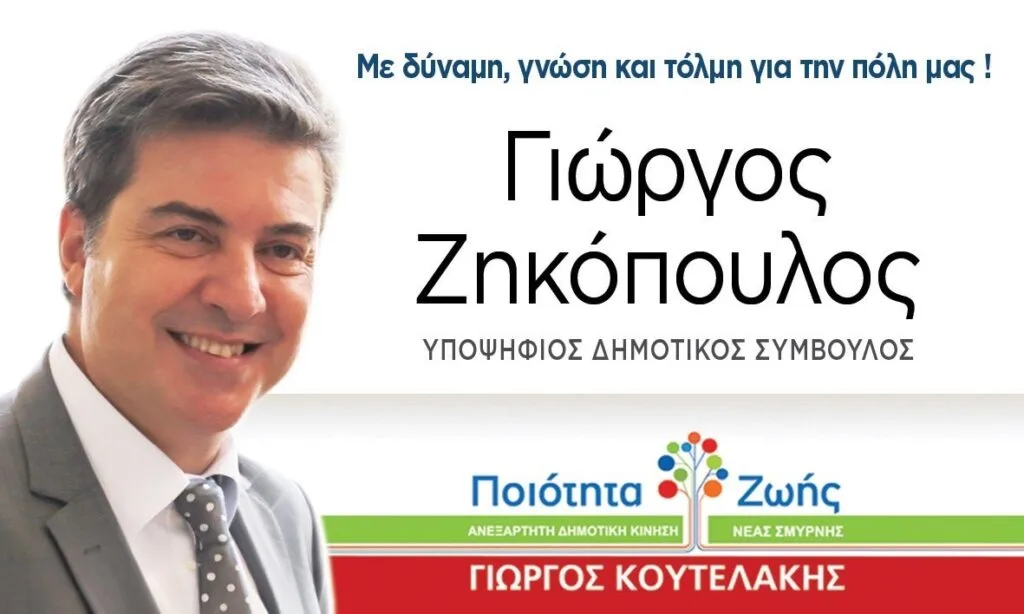 Ο Γιώργος Ζηκόπουλος, μέλος της Διοίκησης του Ε.Ε.Α., υποψήφιος δημοτικός σύμβουλος στη Νέα Σμύρνη με την παράταξη «Ποιότητα Ζωής-Γιώργος Κουτελάκης»