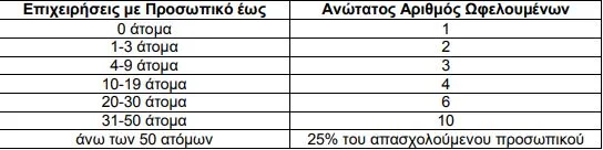 Οι επιχειρήσεις εντάσσονται στο πρόγραμμα, ανάλογα με το προσωπικό τους, ως εξής: