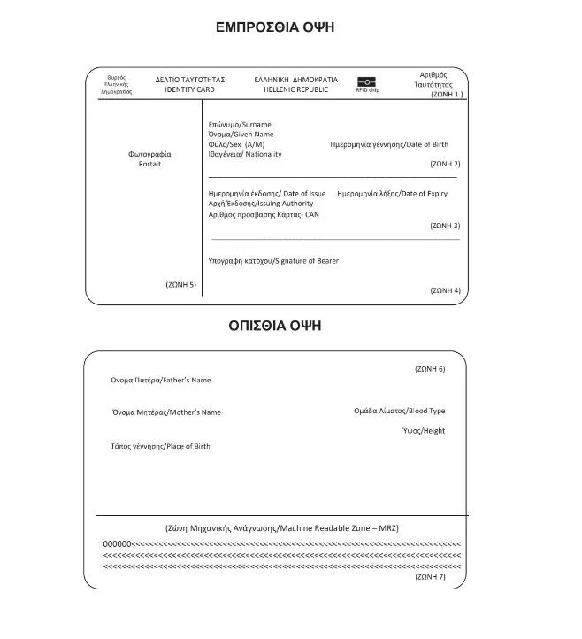 Στην εμπρόσθια όψη θα υπάρχει φωτογραφία του κατόχου και θα αναγράφονται τα στοιχεία του, η ημερομηνία έκδοσης και λήξης, η αρχή έκδοσης και ο Αριθμός πρόσβασης Κάρτας- CAN.