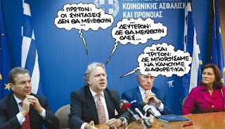 Στις μειώσεις αυτές, αν προσθέσουμε την ακρίβεια και το υπέρογκο κόστος των δαπανών της υγειονομικής μας περίθαλψης -αφού πλέον πληρώνουμε όλες τις ιατρικές μας δαπάνες- τότε μιλάμε για πλήρη απορρύθμιση του ασφαλιστικού-συνταξιοδοτικού συστήματος και κατεδάφιση-διάλυση-εξαθλίωση της κοινωνίας μας.