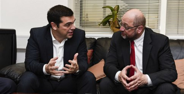 Εάν ήταν ή εάν γίνει καγκελάριος ο Μάρτιν Σουλτς, τι διαφορετικό θα έκανε για την Ελλάδα από αυτά που κάνουν η Μέρκελ και ο Σόιμπλε; Στην άμεση διαχείριση της ελληνικής κρίσης, τίποτα διαφορετικό. Θα έκανε ακριβώς τα ίδια. Αυτό προκύπτει από την απάντηση που έδωσε χθες στο ερώτημα των «Νέων» κατά τη συνάντησή του με τους ξένους ανταποκριτές στο Βερολίνο. Η γερμανική κυβέρνηση ακολουθεί ενιαία γραμμή, εκφράζεται από την καγκελάριο και δεσμεύει όλα τα μέλη της κυβέρνησης, είπε ο Μάρτιν Σουλτς, πρόεδρος του συγκυβερνώντος SPD. Η θέση της κυβέρνησης είναι ο συγκερασμός των θέσεων των κομμάτων που αποτελούν την κυβέρνηση. Φυσικά και των Σοσιαλδημοκρατών. «Αναζητήσαμε και βρήκαμε τη λύση από κοινού στην ομοσπονδιακή κυβέρνηση για τη συζήτηση των τελευταίων ημερών» εξήγησε ο Σουλτς. «Περιμένω ότι οι συμφωνίες που έκλεισαν στο Eurogroup θα καταστήσουν εφικτή την εκταμίευση της επόμενης δόσης. Για να συμβεί αυτό, πρέπει όλοι να τηρήσουν τα συμφωνηθέντα» πρόσθεσε. Ακόμα και την παραμονή της Ελλάδας στο ευρώ συνέδεσε άμεσα με την υλοποίηση των μεταρρυθμίσεων, γραμμή την οποία ακολουθεί και ο Σόιμπλε. Αν η κυβέρνηση Τσίπρα ήλπιζε ότι με τον Σουλτς θα απαλλαγεί από τον Σόιμπλε, οι χθεσινές τοποθετήσεις του υποψήφιου καγκελάριου και προέδρου του SPD διέλυσαν μία ακόμη «αυταπάτη». Ο πρόεδρος του SPD άγγιξε και το ευαίσθητο ζήτημα της παραμονής της Ελλάδας στο ευρώ, την οποία συνέδεσε ευθέως με την πορεία των μεταρρυθμίσεων στη χώρα. «Το ζήτημα πώς θα κρατήσουμε την Ελλάδα στην ευρωζώνη και πώς θα γίνει βιώσιμη η ανάπτυξη της οικονομίας της εξαρτάται από τον βαθμό που θα υλοποιηθούν τα μεταρρυθμιστικά βήματα στην Ελλάδα» είπε ο Μάρτιν Σουλτς. Περιμένει ότι όσα συμφωνήθηκαν θα βοηθήσουν στην κατεύθυνση αυτή και θα τηρηθούν και από τις δύο πλευρές, και από τους πιστωτές και από την Ελλάδα. «Πρέπει να έχουμε ενδιαφέρον για βιώσιμη ανάπτυξη της Ελλάδας. Τα πλεονάσματα και τα τεράστια βήματα που έγιναν για αυτό δείχνουν ότι η Ελλάδα είναι διατεθειμένη να πράξει ό,τι είναι απαραίτητο» εκτίμησε ο Σουλτς.