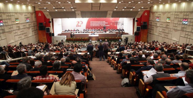 Με τη φωνή του Κώστα Βάρναλη να απαγγέλει «Δεν είμαι εγώ σπορά της τύχης/ ο πλαστουργός της νιας ζωής/ Εγώ 'μαι τέκνο της ανάγκης και ώριμο τέκνο της οργής», από το ποίημά του «Οδηγητής» το οποίο ήταν απόσπασμα στο έργο του «Το Φως που Καίει» και στη συνέχεια η φωνή του ποιητή να ενώνεται με τη μελοποίηση του ποιήματος που τραγουδούσαν δεκάδες μέλη της ΚΝΕ, ξεκίνησαν, σήμερα το πρωί, στην Αίθουσα Συνεδρίων στην έδρα της ΚΕ του ΚΚΕ, στον Περισσό, οι εργασίες του 20ου Συνεδρίου του κόμματος. Ακολούθησε η προβολή ντοκιμαντέρ που συμπύκνωνε ιστορικές, κοινωνικές, και οικονομικές εξελίξεις από το 1918, έτος ιδρύσεως του ΚΚΕ, έως σήμερα, συμπεριλαμβάνοντας και την πορεία και δράση του ΚΚΕ. Στη συνέχεια, ο γγ της ΚΕ του ΚΚΕ, Δημήτρης Κουτσούμπας, παρουσίασε την Εισήγηση της ΚΕ προς το 20ο Συνέδριο, αναφέροντας ότι «παραμένει ως βασικό ζητούμενο η ισχυροποίηση του κόμματος, ώστε να γίνει ικανό, ως κόμμα της κοινωνικής ανατροπής, να φέρει σε πέρας τον ιστορικό πρωτοπόρο ρόλο του, αξιοποιώντας και βαθαίνοντας με την ταξική πάλη τις αντιθέσεις και αντιφάσεις του καπιταλιστικού συστήματος». Αναφερόμενος στη σημερινή διεθνή πραγματικότητα, επισήμανε την όξυνση των αντιθέσεων μεταξύ των επιμέρους καπιταλιστικών κρατών, των στρατιωτικών -πολιτικών και οικονομικών- πολιτικών συμμαχιών τους και τους ανταγωνισμούς που έχουν οδηγήσει σε πολέμους και ανακατατάξεις. Περιγράφοντας με λεπτομέρειες τις τάσεις, αντιφάσεις, ανταγωνισμούς και τις αντανακλάσεις αυτών σε ιδεολογικό και πολιτικό επίπεδο, ο κ. Κουτσούμπας είπε ότι «αναμφίβολα υποβόσκει νέα, πιο συγχρονισμένη οικονομική κρίση, όξυνση της διαπάλης για τον έλεγχο αγορών, ενεργειακών πηγών και δρόμων μεταφοράς πετρελαίου και φυσικού αερίου. Αυτό υποδηλώνουν οι υπάρχουσες πολεμικές εστίες στη Μέση Ανατολή, στην Ουκρανία, οι εντάσεις στην Ανατολική και Κεντρική Ευρώπη σε σχέση με τη Ρωσία, στην Αρκτική και στη Θάλασσα της Νότιας Κίνας. Όλες αυτές οι εστίες αυξάνουν τον κίνδυνο μιας ευρύτερης γενίκευσης του ιμπεριαλιστικού πολέμου». «Οξύνεται η βασική αντίθεση ανάμεσα στο κεφάλαιο και την εργασία, ενισχύεται η τάση για απόλυτη και σχετική εξαθλίωση της εργατικής τάξης, αυξάνεται το ποσοστό της μόνιμης, μακροχρόνιας ανεργίας, αυξάνεται ο βαθμός εκμετάλλευσης της εργατικής τάξης και στις πιο αναπτυγμένες καπιταλιστικές οικονομίες, οξύνονται όλες οι κοινωνικές αντιθέσεις», τόνισε. Αναφερόμενος, ειδικά, στην όξυνση των αντιθέσεων στην ΕΕ και στην Ευρωζώνη, είπε ότι αυτή ενισχύει τις αποσχιστικές τάσεις, οι οποίες με τη σειρά τους τροφοδοτούν τον αστικό "ευρωσκεπτικισμό", τον οποίο χαρακτήρισε «ρεύμα εξίσου αντιδραστικό – αντιλαϊκό που στηρίζεται από λόμπι δισεκατομμυριούχων, από φασιστικές δυνάμεις». «Παράλληλα, διευρύνονται τα οφέλη υπέρ της Γερμανίας και κατά της Γαλλίας, της Ιταλίας και άλλων κρατών. Εκτιμάμε ότι στο μέλλον θα οξυνθούν τα προβλήματα συνοχής στην ΕΕ και θα επέλθουν αλλαγές στη δομή της, επομένως και στο αστικό πολιτικό σύστημα μέσα στην ΕΕ, στις χώρες της Ευρωζώνης», είπε ο κ. Κουτσούμπας, τονίζοντας ότι «αν και παραμένει πρωταρχικό το εθνικό πεδίο της ταξικής πάλης, ταυτόχρονα ο συντονισμός της σε περιφερειακό και διεθνές επίπεδο έχει μεγάλη σημασία. Το κύριο πρόβλημα είναι ότι στο διεθνές πεδίο δεν παρατηρείται ανάταση του κομμουνιστικού κινήματος, που θα αποτελούσε πραγμα