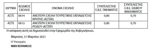 Δείτε για ποιές σχολές αναλυτικά: Kαθορισμός του συντελεστή Ελάχιστης Βάσης Εισαγωγής (Ε.Β.Ε.) ως προϋπόθεση συμμετοχής των υποψηφίων στις Πανελλήνιες 2021 στη διαδικασία επιλογής για εισαγωγή στις σχολές των Α.Σ.Ε.Ι. και Α.Σ.Σ.Υ., στη Σ.Σ.Α.Σ., στις σχολές της Αστυνομικής και Πυροσβεστικής Ακαδημίας, στις Α.Ε.Ν., στις σχολές Δοκίμων Σημαιοφόρων Λιμενικού Σώματος και Λιμενοφυλάκων, καθώς και στις Α.Σ.Τ.Ε. του Υπουργείου Τουρισμού