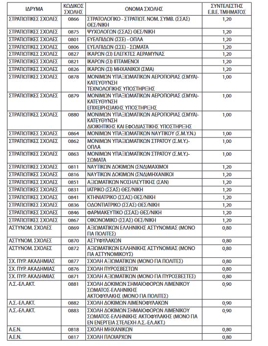 Η ανακοίνωση των συντελεστών θα διαλευκάνει και μία ακόμη πτυχή. Οι δημοφιλείς σχολές δεν επηρεάζονται καθόλου, καθώς ακόμα και ο ανώτατος συντελεστής της ΕΒΕ, δεν αγγίζει τις υψηλόβαθμες βάσεις, όπως ακριβώς και με τις Στρατιωτικές Σχολές, όπως έχει σημειωθεί σε ρεπορτάζ του iPaidia.gr.