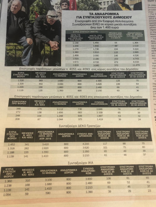 Αναδρομικά από 30 έως 500 ευρώ τον μήνα μένουν στο τραπέζι των διεκδικήσεων για 1,5 εκατ. συνταξιούχους με μια τελική λύση στο μεγάλο αυτό ζήτημα να είναι ορατή περισσότερο από κάθε άλλη φορά.