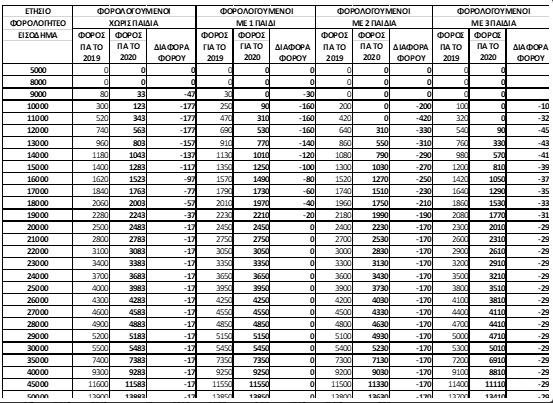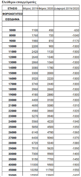Οι αλλαγές στο φορολογικό βάρος μισθωτών, συνταξιούχων και ελευθέρων επαγγελματιών στους πίνακες που ακολουθούν: