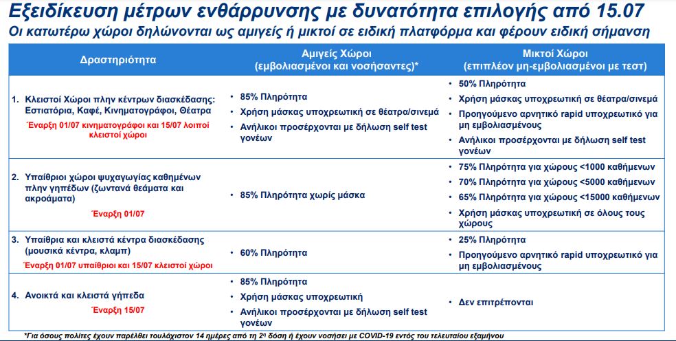 Στους αμιγείς χώρους θα επιτρέπεται η είσοδος σε όσους έχουν συμπληρώσει 14 μέρες από τη δεύτερη δόση εμβολίου και όσους έχουν νοσήσει το τελευταίο εξάμηνο.
