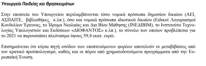 Οι δαπάνες που προβλέπονται στον Κρατικό Προϋπολογισμό 2021 για το υπουργείο Παιδείας