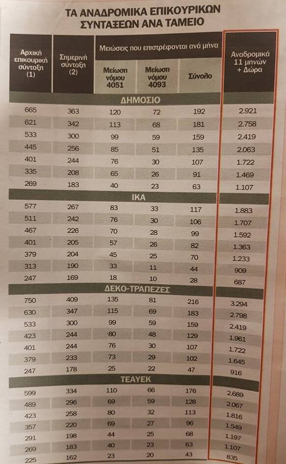 Συντάξεις – αναδρομικά: Τουλάχιστον 800 ευρώ θα πάρουν, όλοι οι συνταξιούχοι. Απόφαση αναγνωρίζει αναδρομικά από δώρα κύριων συντάξεων για συνταξιούχους του ιδιωτικού τομέα, ενώ για του Δημοσίου θεωρεί μεν αντισυνταγματική την περικοπή τους, αλλά τους παραπέμπει για το θέμα των αναδρομικών στο Ελεγκτικό Συνέδριο.