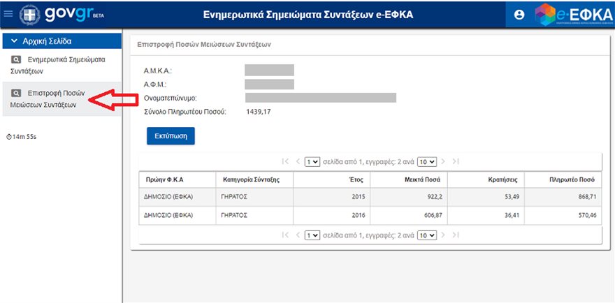Στο πλαίσιο της πληρέστερης, αναλυτικότερης και έγκυρης ενημέρωσης των συνταξιούχων του e-ΕΦΚΑ σχετικά με τα αναδρομικά ποσά που έχουν πιστωθεί στους λογαριασμούς τους, η Διοίκηση του Φορέα έθεσε σε λειτουργία μία νέα εφαρμογή, μέσω της οποίας ο κάθε συνταξιούχος μπορεί να εκτυπώσει άμεσα το δικό του «Ενημερωτικό Σημείωμα Επιστροφής Μειώσεων Συντάξεων».