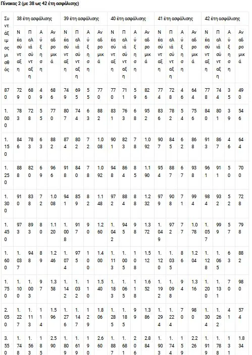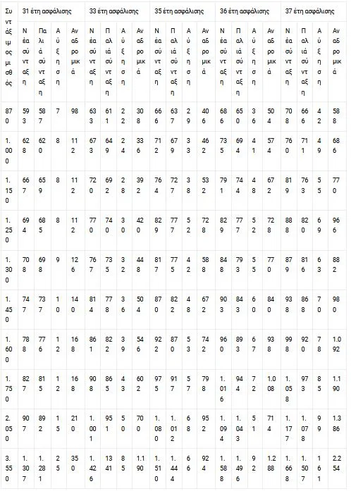 Πίνακας 1 (με 31 ως 37 έτη ασφάλισης)