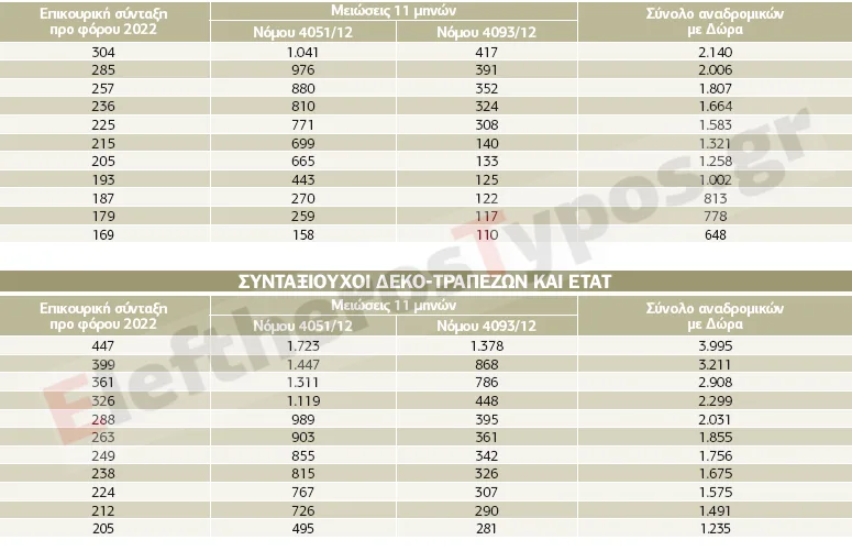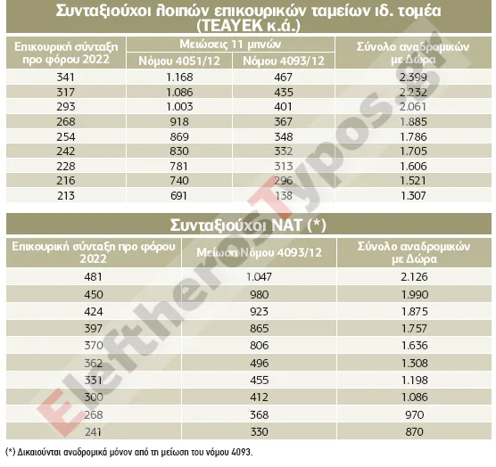 ΤΑ ΑΝΑΔΡΟΜΙΚΑ ΣΤΙΣ ΕΠΙΚΟΥΡΙΚΕΣ ΣΥΝΤΑΞΕΙΣ ΑΝΑ ΤΑΜΕΙΟ