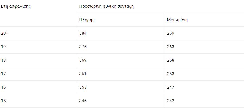 Το στάδιο που παρεμβάλλεται στην απονομή συντάξεων είναι η άμεση πληρωμή της εθνικής σύνταξης μετά την υποβολή της αίτησης συνταξιοδότησης με ελάχιστο ποσό τα 346 ευρώ το μήνα για 15 έτη ασφάλισης και τα 384 ευρώ για 20 έτη και άνω για όσους αποχωρούν με όριο ηλικίας πλήρους σύνταξης, και αντίστοιχα με 242 ευρώ και 269 ευρώ για όσους συνταξιοδοτούνται με όρια ηλικίας για μειωμένη.