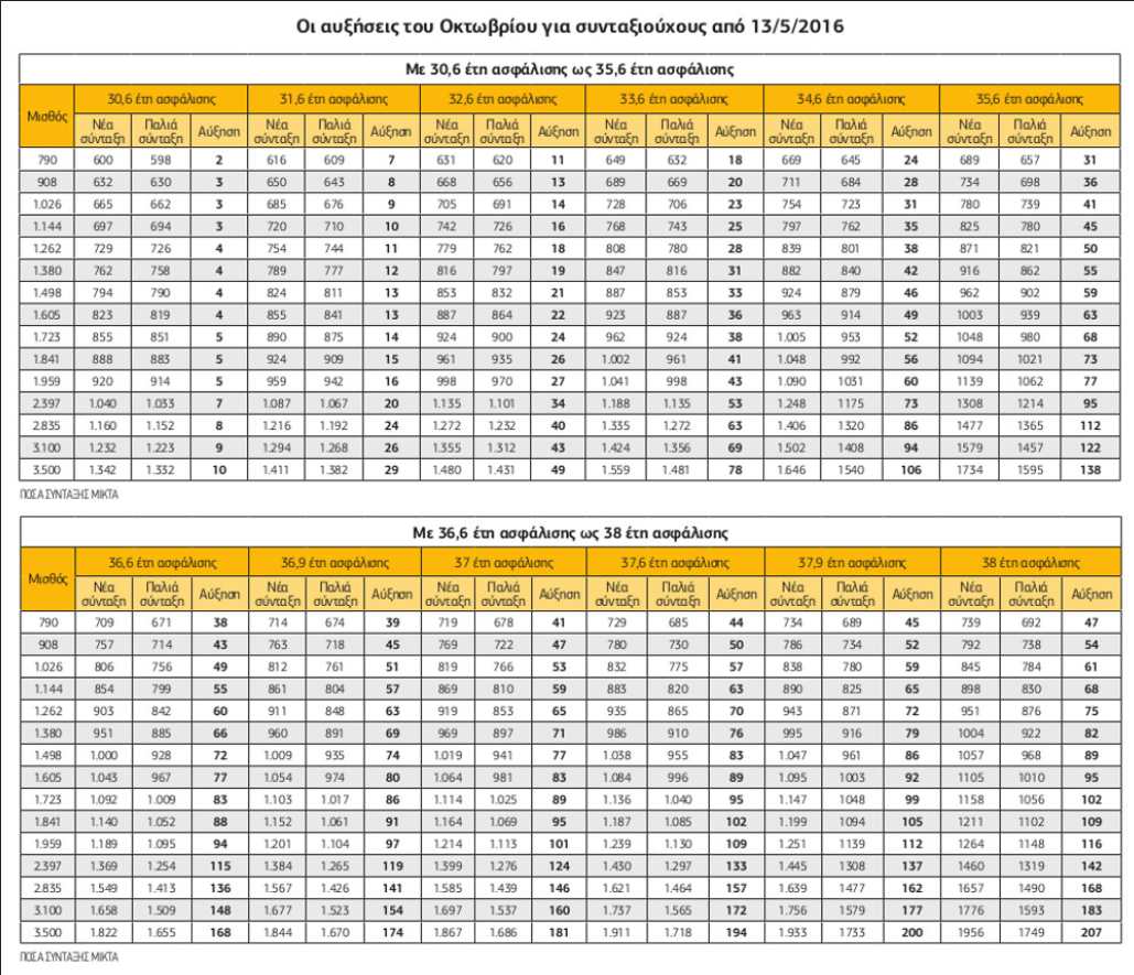 Τα ποσά των αυξήσεων είναι ανάλογα με τα έτη ασφάλισης και τις συντάξιμες αποδοχές που είχαν όταν πήραν την αρχική τους σύνταξη.