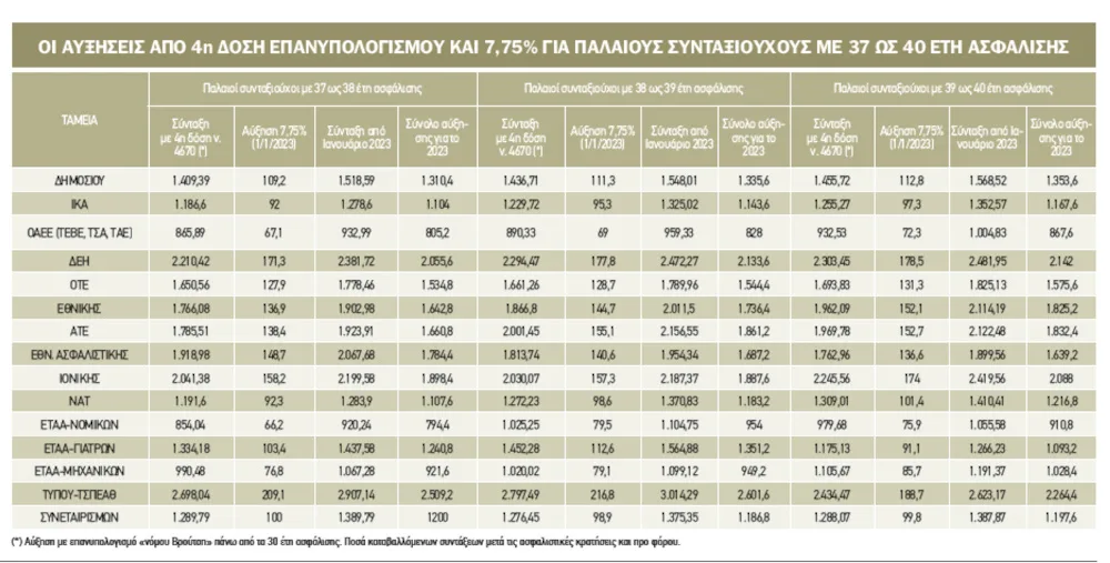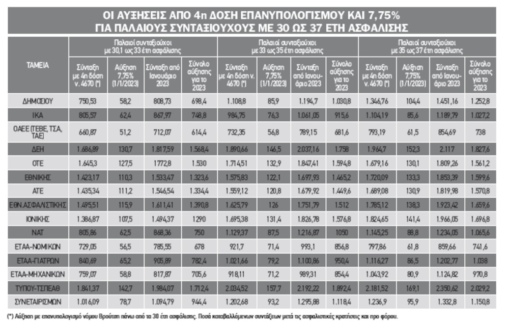 Περίπου 250.000 παλαιοί συνταξιούχοι έχουν διπλή αύξηση (4η δόση επανυπολογισμού και 7,75%).