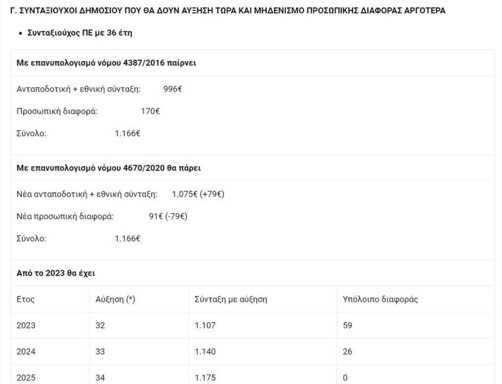 Από την άλλη πλευρά, πάρα πολλές χιλιάδες παλαιών συνταξιούχων του ΙΚΑ με 30 έτη ασφάλισης και άνω θα έχουν μεν αύξηση αλλά δεν θα ξεπεράσουν την προσωπική διαφορά, από την οποία θα τους μείνει ένα μικρό υπόλοιπο, που θα το καλύψουν όμως με τις αυξήσεις που ξεκλειδώνουν από το 2023.