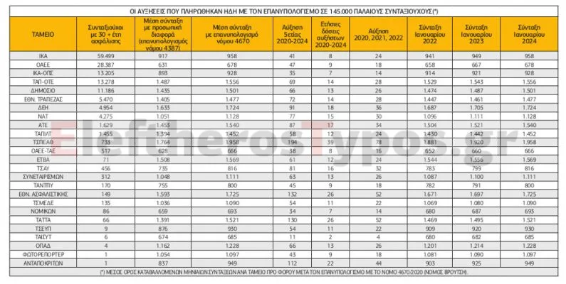 Η εκτίμηση στελεχών του ΕΦΚΑ είναι ότι από τις 250.000 συντάξεις που θα επανυπολογιστούν, αυξήσεις θα πάρουν 40.000 ως 50.000 συνταξιούχοι, οι οποίοι θα μηδενίσουν την προσωπική διαφορά.