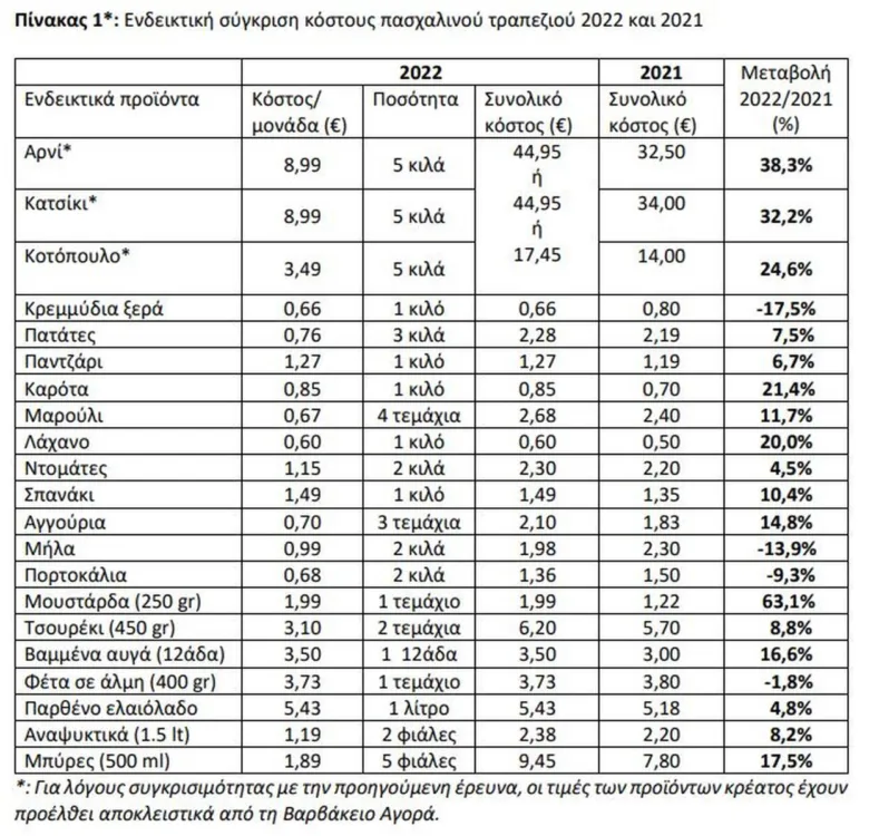 Αυξημένο κατά πολύ είναι το κόστος του φετινού πασχαλινού τραπεζιού σύμφωνα με το Ινστιτούτο Εμπορίου και Υπηρεσιών της Ελληνικής Συνομοσπονδίας Εμπορίου και Επιχειρηματικότητας (ΙΝ.ΕΜ.Υ.-ΕΣΕΕ) .