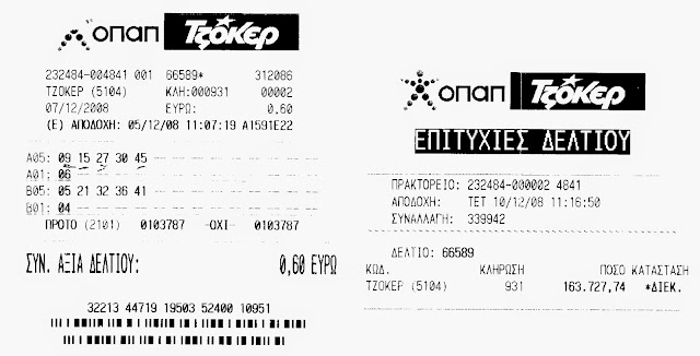 Επίσης, αν κάποιος θέλει να έχει 100% πιθανότητα να κερδίσει το 5άρι (χωρίς σύστημα πάντα) πρέπει να ξοδέψει 610.880€ σε 1.221.759 απλά δελτία διαφορετικών συνδυασμών και αν θέλει να έχει 100% πιθανότητα να κερδίσει το 5+1 πρέπει να ξοδέψει 12.217.590€ σε 24.435.180 διαφορετικά δελτία.