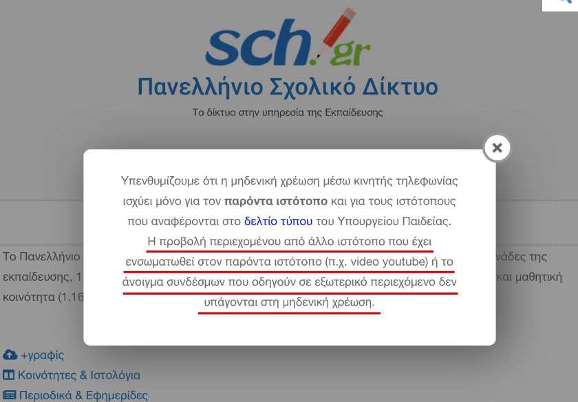 Η υπουργός Παιδείας Νίκη Κεραμέως με δελτίο τύπου στις 8 Απριλίου 2020, καθώς και με φτηνούς εντυπωσιασμούς στη Βουλή κατά τη συζήτηση επίκαιρης ερώτησης του τομεάρχη Παιδείας του ΣΥΡΙΖΑ Νίκου Φίλη, ανακοίνωσε πως ξεκινά η χωρίς χρέωση πρόσβαση στο internet (zerorating) για μαθητές και εκπαιδευτικούς που συμμετέχουν στην εξ αποστάσεως εκπαίδευση. Έσπευσε μάλιστα να ευχαριστήσει τις εταιρίες κινητής τηλεφωνίας για την κοινωνική τους προσφορά.