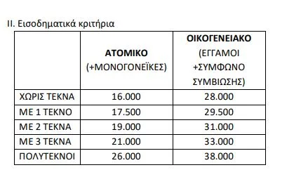 Το πρόγραμμα απευθύνεται σχεδόν στο σύνολο των Ελλήνων, εφόσον το 90% των πολιτών μπορεί να υποβάλει αίτηση ένταξης στο πρόγραμμα. Κριτήριο για ένταξη στο πρόγραμμα είναι το ετήσιο ατομικό εισόδημα να είναι έως 16.000 ευρώ, 28.000 για οικογενειακό, συν την προσαύξηση 1.500 ευρώ ανά τέκνο.