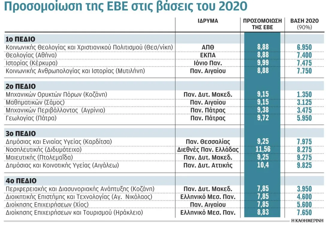 • Οι υποψήφιοι του 4ου πεδίου θα είχαν τη χαμηλότερη βάση –στο 7,85 και τις 7.850 μονάδες–, αυξημένη κατά περίπου 3.900 μονάδες από τη χαμηλότερη βάση του πεδίου για το 2020.