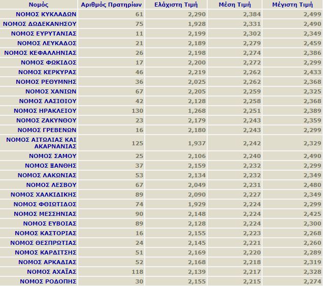 Πώς διαμορφώνονται οι μέσες τιμές της αμόλυβδης βενζίνης ανά νομό