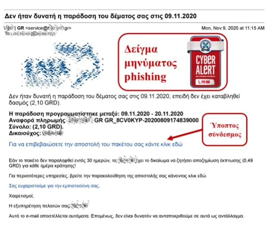 Tι πρέπει να προσέξετε – Στη Διεύθυνση Δίωξης Ηλεκτρονικού Εγκλήματος καταγγέλλονται το τελευταίο διάστημα περιπτώσεις απόπειρας υποκλοπής δεδομένων προσωπικού χαρακτήρα, μέσω email με τη χρήση τεχνικών «ηλεκτρονικού ψαρέματος» (phishing).