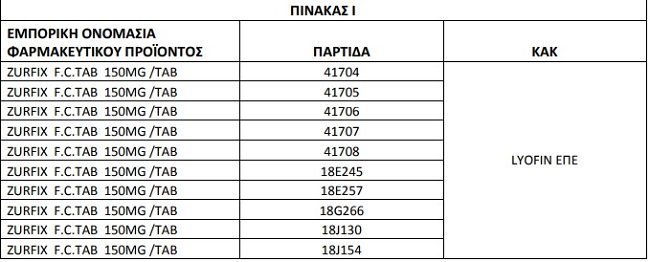 Στην ανάκληση των παρτίδων των φαρμακευτικών προϊόντων Zurfix προχώρησε ο ΕΟΦ.