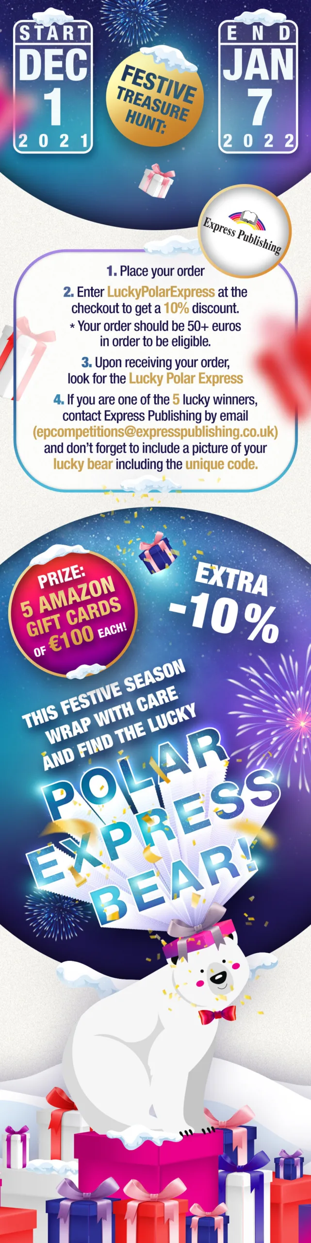 Express Publishing: Festive Treasure Hunt: Find the lucky Polar Express Bear and Win Amazon Gift Cards! Place your orders now. Visit: www.expresspublishing.co.uk Click here to view the Terms & Conditions