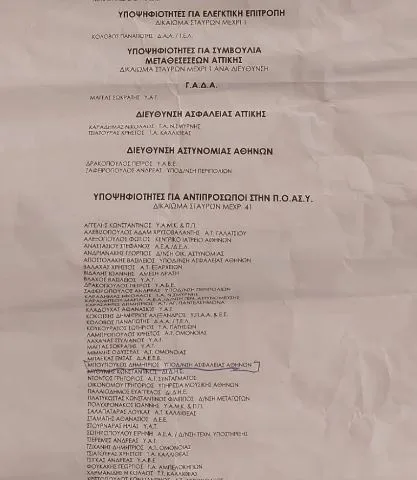 Όπως βλέπετε στη φωτογραφία που δημοσιεύει το Πρώτο Θέμα, ο κατηγορούμενος είχε συμπεριληφθεί στο ψηφοδέλτιο της συνδικαλιστικού οργάνου της Μάχιμης Προοδευτικής Συσπείρωσης Των Αστυνομικών Αθήνας, (Μ.ΠΡΟ.Σ.Τ.Α).